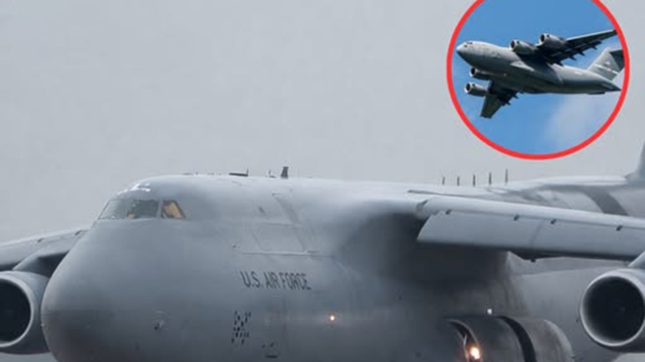 C-5M Super Galaxy ise yaklaşık 127,5 ton taşıma kapasitesiyle ABD'nin en büyük stratejik nakliye uçakları arasında yer alıyor.