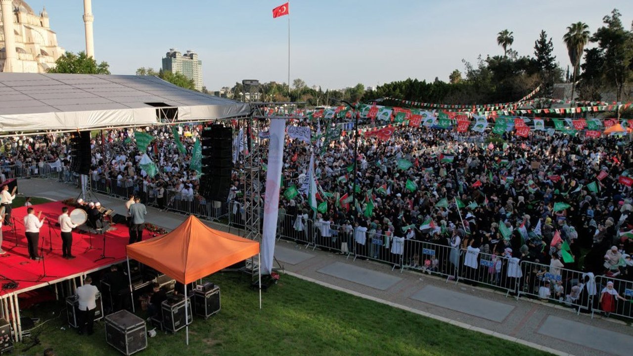 Meydanda toplanan binlerce kişi ellerinde tevhid ve Filistin bayraklarını dalgalandırarak etkinliğe eşlik etti. Alanda ayrıca 2023 yılında namaz kıldığı sırada bıçaklanarak şehit edilen Sacit Pişgin posterleri de yer aldı.