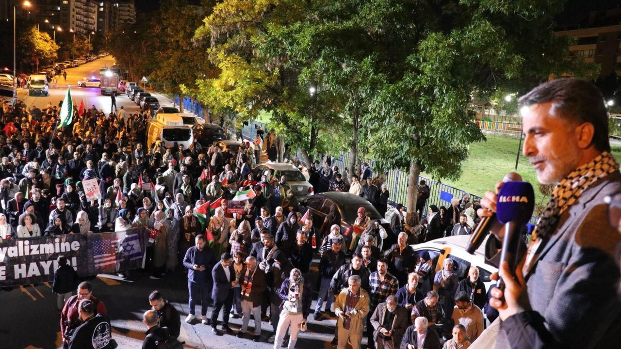 "Biliyorsunuz, şu arkamda bulunan (ABD Büyükelçiliği) heriflerin ağababaları büyük şeytanın ve terörist elebaşısı (Trump) plan açıkladı. Güya 'barış planı' şeytanlığa bakar mısınız ne barışı ya… Bir plan olacaksa Gazze'den defolup gidecekler başka yok. İnşallah şuradan da (ABD Büyükelçiliği) bir gün defolup gidecekler. Teslim olmamızı beklemesinler. Biz asla teslim olmayacağız. Ama bunun için kararlı olmamız lazım. Sözde 'bir planla' dünyaya şu mesajı veriyorlar: 'Bakın, işte biz bir teklifte bulunduk ama HAMAS kabul etmedi.' Yok ya neymiş teklif? 'Silahları bırakacaklarmış.' Başka 'rehineleri teslim edeceklermiş.' Başka yönetimi de yaşı müsait olanlar bilir Tony Blair gibi sicili kabarık bir katilin bir yavşağın eline teslim edecekler. Sonra bize bunu yutturacaklar. Ya siz kimsiniz? HAMAS'ın silahsızlandırılması demek, Filistin'in kalan toprakların tamamı işgal edilmesi demek bunun başka bir anlamı yok. Onun için bizim bu oyuna bu tezgâha gelmememiz lazım. Güya barış havarisi kesildiler. Bugün 2 Ekim. 2 Ekim çok yönüyle önemli bir tarih. Birincisi Selahaddin Eyyubi'nin Kudüs'ü geri aldığı gün. Allah'ın izniyle bu sene nasıp olsun diye ümit ediyorum. Bir sonraki ekime bu iş kalmamalı. Bir de güya hani bunlar modern ya… Güya insanlıktan, insan hakları, kadın hakları ve çocuk haklarından bahsediyorlar. Be utanmazlar. Bir de 2 Ekim dünya çocuk günü. Şimdi Paris'in, Berlin'in ve Londra sokaklarında belki bugün (ben izlemedim de) çocuk hakları için birileri belki yürüyüşler yapmıştır. Yuh be size utanmazlar. Gazze'de 20 bin çocuk katlettiniz. Çocuklar açlıktan öldü. İnsafsızlar… lanet olsun sizin o 'medeniyet' diye pazarladığınız o alçaklığa lanet olsun. Batı’nın ikiyüzlülüğünü Aliya İzzetbegoviç’in sözleriyle ifade edebilirim: 'Batı hiçbir zaman insan olmadı.' Bunlar Gazze'de ölen çocuklar insan değil miydi? Bu 'çocuk günleri', 'kadın hakları günleri' kimin için. Sadece kendileri için bu Trump’ın dayatmaya çalıştığı plana kesinlikle müsaade edilmemesi lazım."