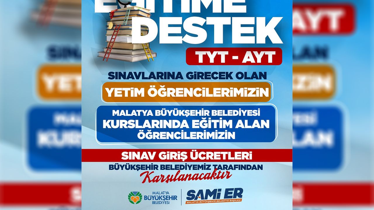 Eğitimde fırsat eşitliğini önceleyen Malatya Büyükşehir Belediyesi, yetim öğrenciler ile Büyükşehir Belediyesi'ne bağlı kurslarda eğitim gören üniversite adaylarının sınav giriş ücretlerini karşılayacak.