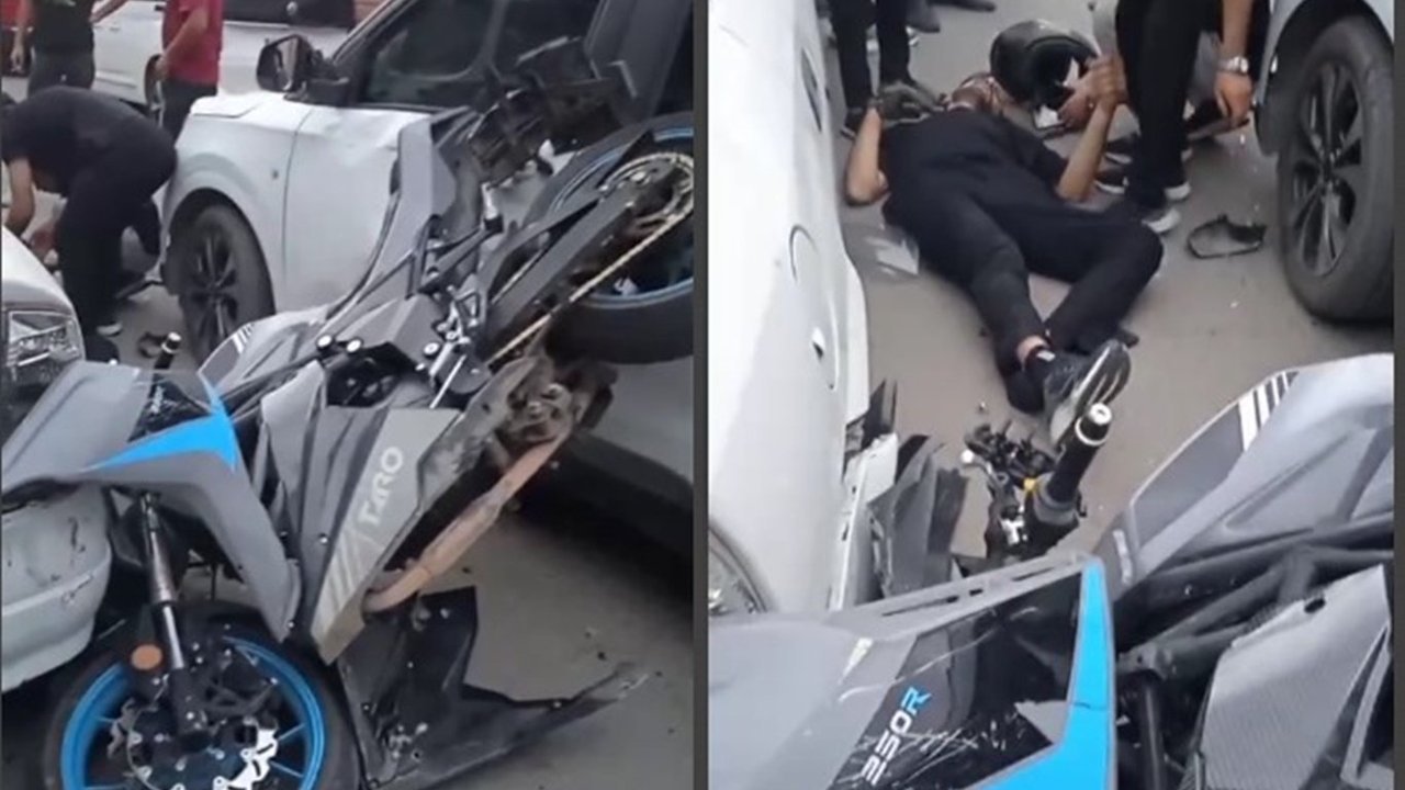 Batman merkez Akyürek Mahallesi İstasyon Caddesi'nde akşam saatlerinde meydana gelen kazada, seyir halindeki bir motosikletli, iki otomobil arasında sıkıştı.