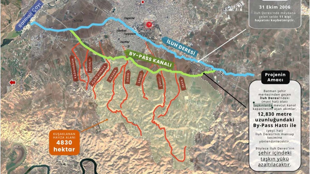 İluh Deresi başta olmak üzere şehir merkezinden geçen dere yataklarında yaşanan taşkınların önlenmesi amacıyla hazırlanan proje kapsamında, alternatif bir su tahliye hattı oluşturulacak. “İluh by-pass hattı” olarak da adlandırılan kuşaklama kanalıyla, yağışlarda oluşan suyun yerleşim alanlarına ulaşmadan Batman Çayı’na yönlendirilmesi hedefleniyor.