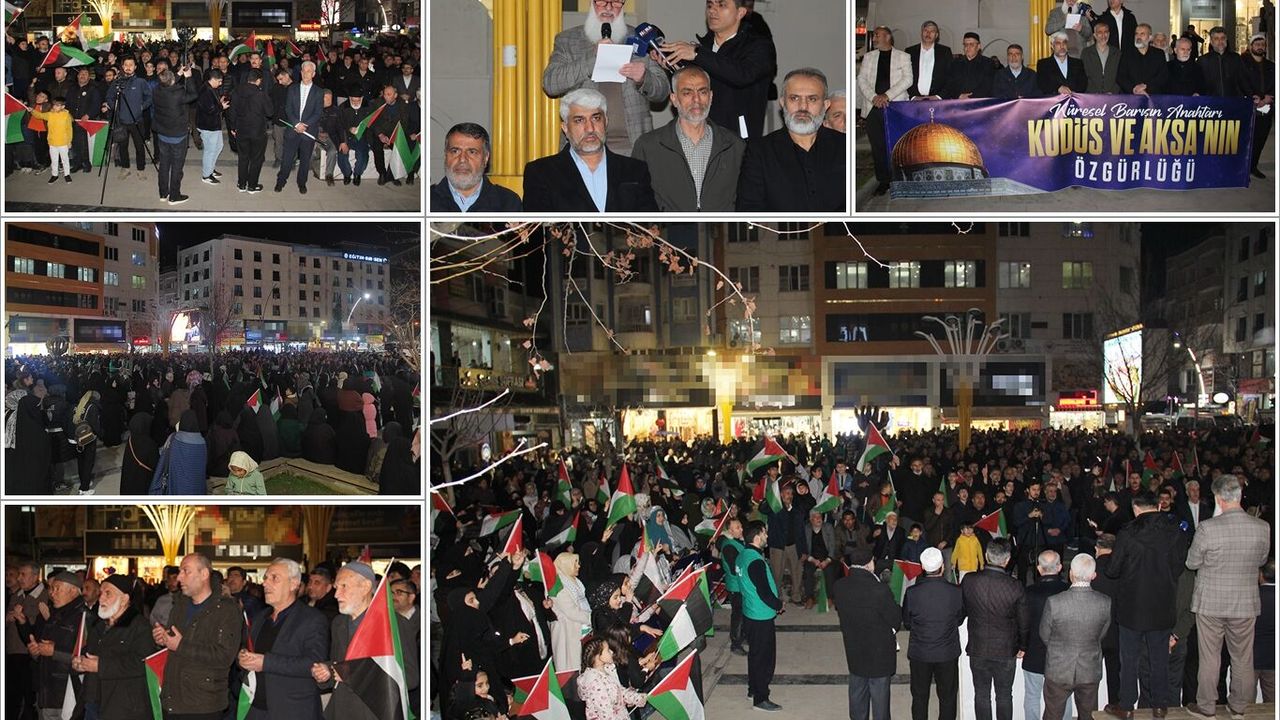 "Küresel barışın anahtarı Kudüs ve Aksa'nın özgürlüğüdür" temasıyla Gülistan Caddesi'nde teravih namazının ardından gerçekleştirilen basın açıklaması yoğun katılımla yapıldı.