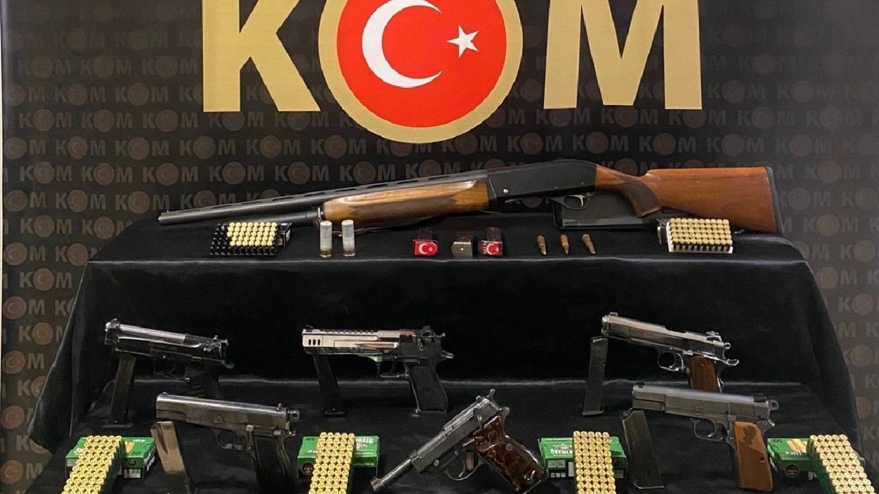 Operasyonlarda 3 ruhsatsız tabanca, 3 kurusıkı tabanca, 1 av tüfeği, 400 fişek ve 10 şarjör ele geçirildi.
