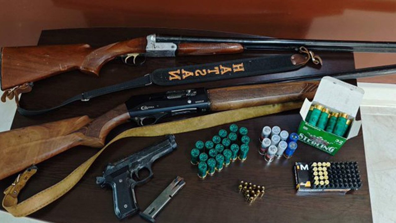 Açıklamada 'Şahsın ikametinde yapılan aramada 2 adet ruhsatsız av tüfeği, bir adet kurusıkı tabanca ve çok sayıda fişek ele geçirilmiştir.' ifadelerine yer verildi.
