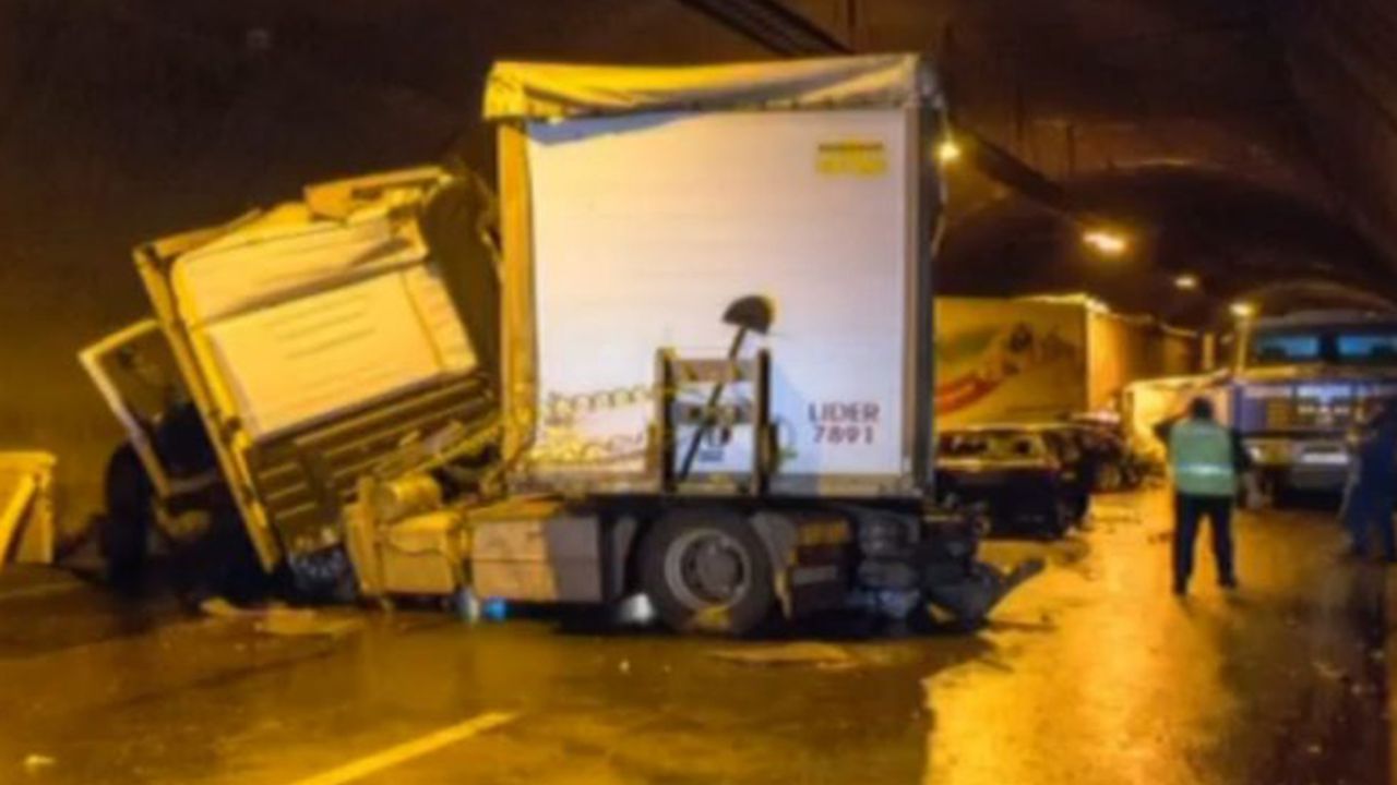 Bulgaristan'ın başkenti Sofya'daki otoyolda arıza nedeniyle yol kenarında duran tır'a arkadan gelen başka bir tır çarptı.