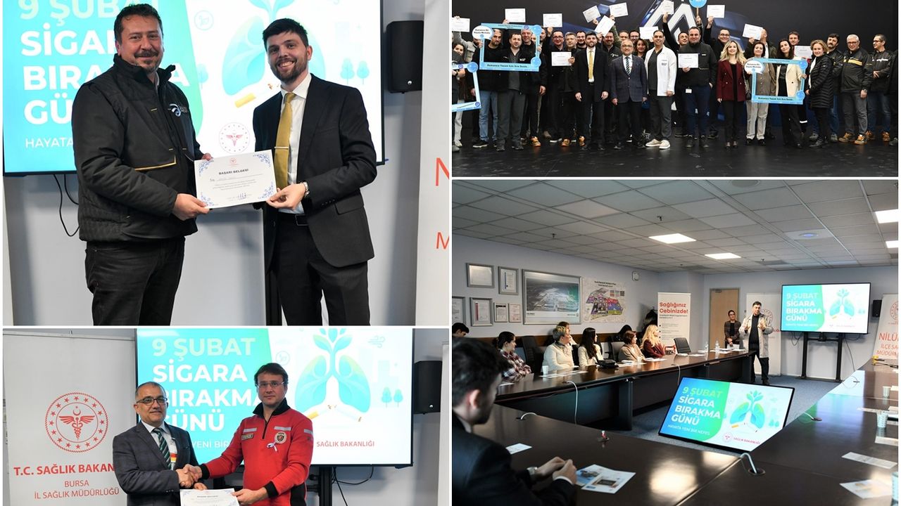 Bursa İl Sağlık Müdürlüğü, fabrika bünyesinde çalışanlara yönelik kurulan Yerinde Sigara Bırakma Polikliniğinde tedavi süreçlerini başarıyla tamamlayan ve sigarayı tamamen bırakan 25 çalışan için fabrika bünyesinde özel bir sertifika töreni düzenlendi.