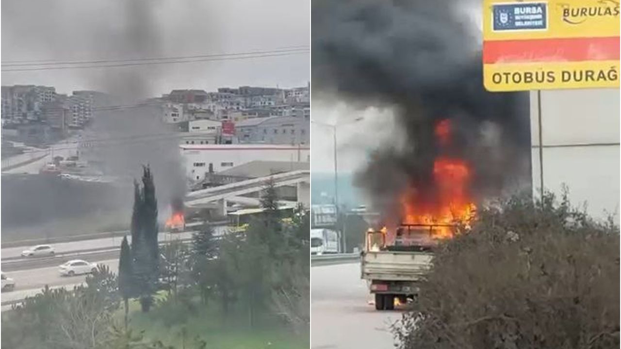 Bursa’nın Nilüfer ilçesi Görükle Mahallesi İzmir Yolu Caddesi’nde hareket halindeki bir kamyonette henüz belirlenemeyen bir nedenle yangın çıktı.