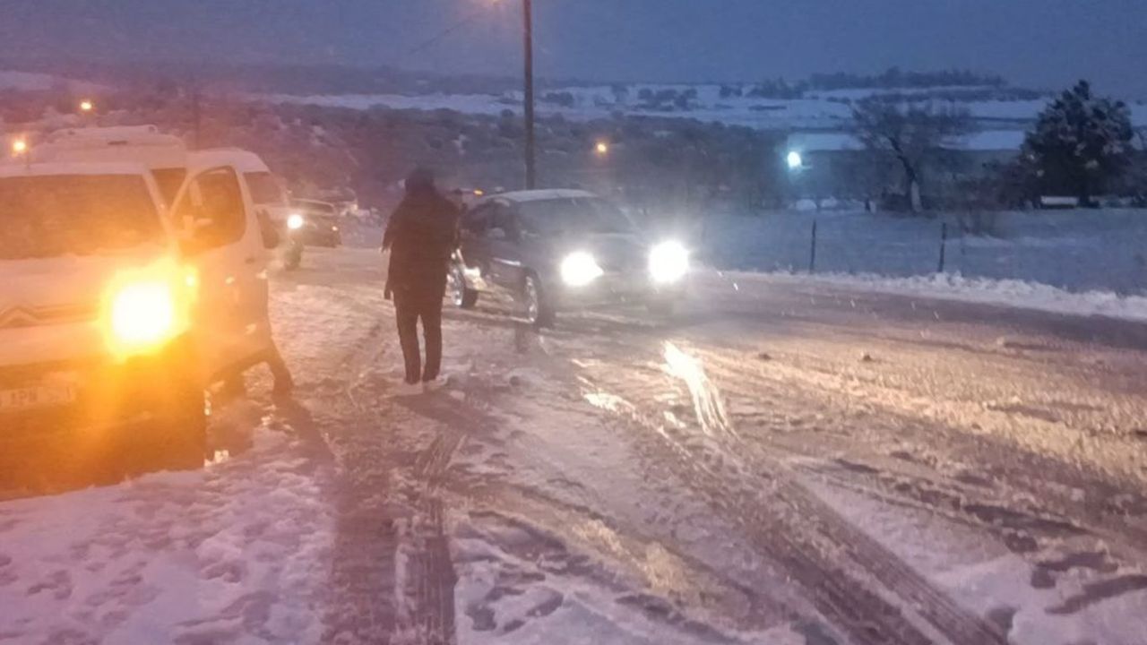 Kar yağışının olduğu bölgelerde uzun araç kuyrukları oluştu. Bazı sürücülerin araçlarını iterek ilerlemeye çalıştığı görüldü.