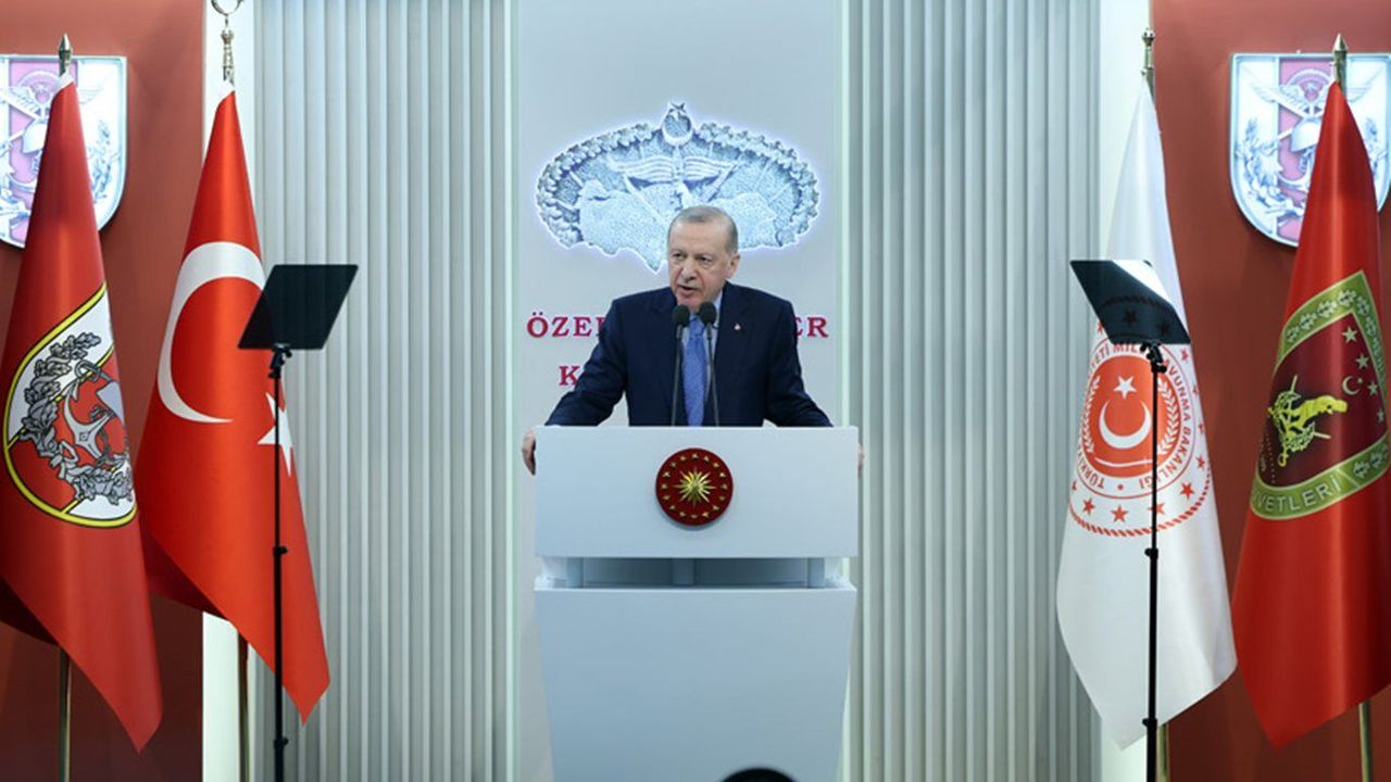Cumhurbaşkanı Erdoğan, Türkiye Cumhuriyeti'nin küresel ölçekte takdir toplayan siyasi, diplomatik ve ekonomik gücünün gerisinde eğitimi, donanımı, disiplini, cesareti ve vizyonuyla tüm dünyada göz dolduran Türk Silahlı Kuvvetlerinin bulunduğunun altını çizdi.