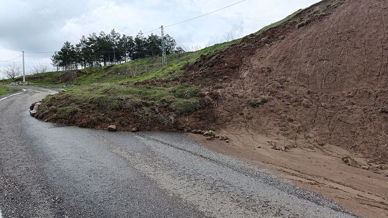 Son dönemde bölgede etkili olan yoğun yağışların ardından, yol kenarındaki toprak kütleleri kayarak karayoluna sürüklendi.