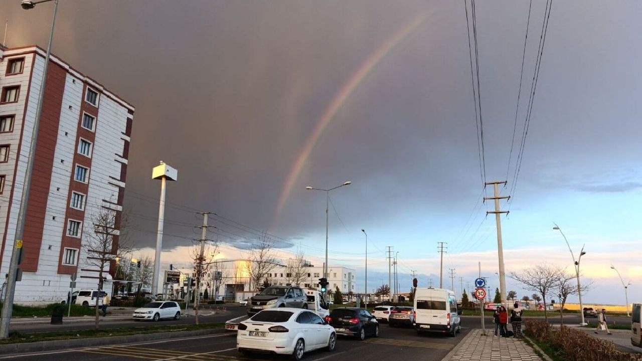 Yağmurla beraber yer yer güneşin açması ile kentin farklı noktalarında seyirlik rengârenk gökkuşağı manzarası oluştu. Vatandaşlar, uzun süre gökkuşağını hayranlıkla izledi. (İLKHA)