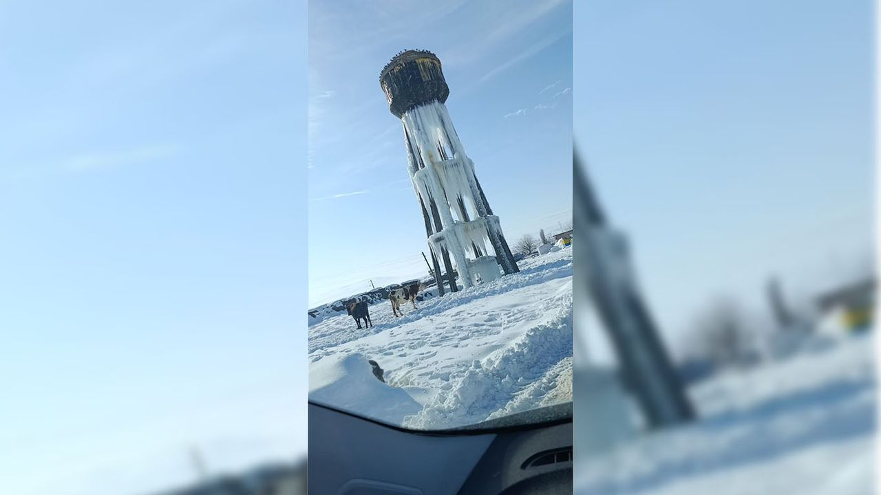 Diyarbakır’ın Ergani ilçesine bağlı Aşağıbitikçi Mahallesi’nde etkili olan dondurucu soğuklar, su kulesini tamamen buzla kapladı.