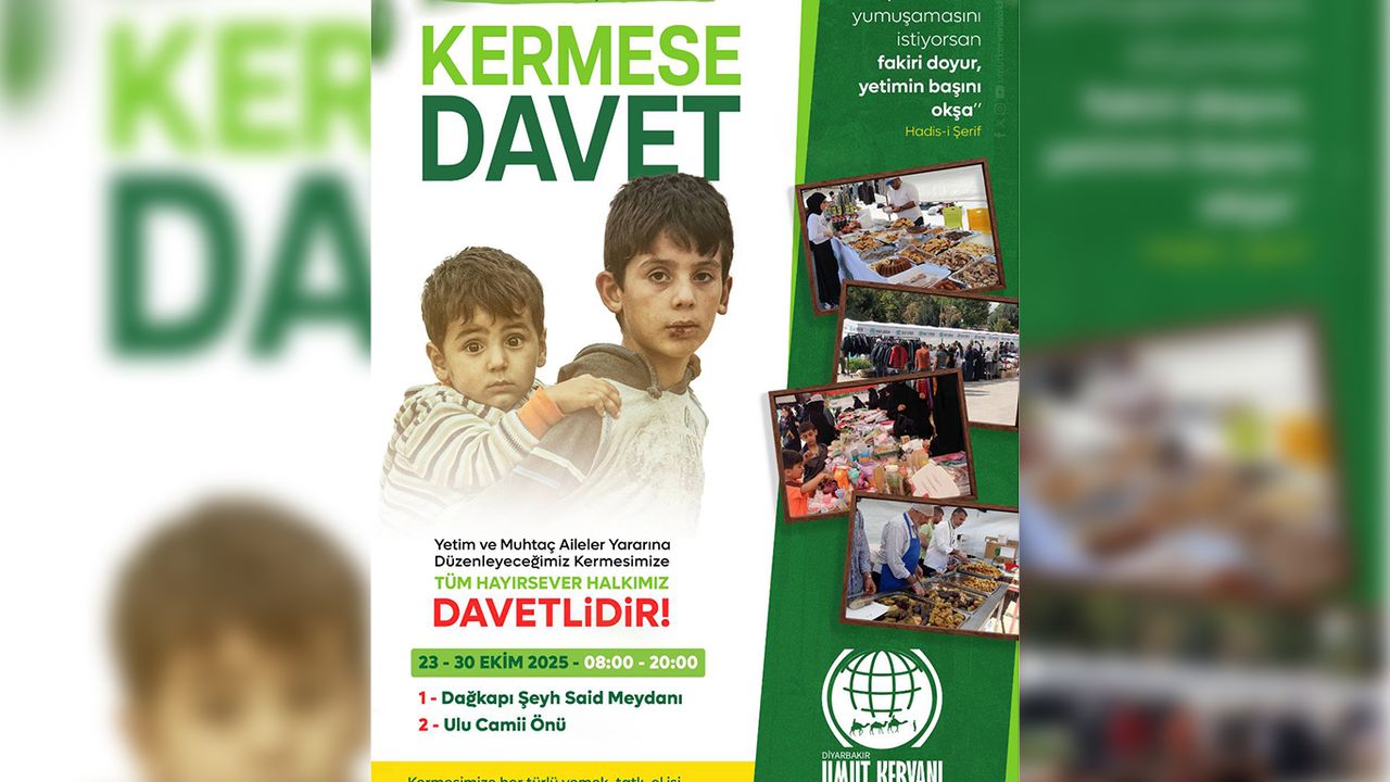 Kermeste satışa sunulacak ürünler hakkında da bilgi aktaran Akyüz, "Kermesimizde elektronikten ev eşyalarına, giyimden yöresel yemeklere kadar stantlarımız olacak. Bu yöresel yemeklerimizle ilgili duyuru ve afişlerini hazırladık, sosyal medyada paylaştık. Bu yemekler sahadaki hayırseverlerimiz tarafından evlerde hazırlanacak. Dağkapı Şeyh Said Meydanında perşembe günü saat 08.00'de başlayıp 30 Ekim perşembe günü akşam namazına kadar bu faaliyetimiz devam edecek." ifadelerini kullandı.