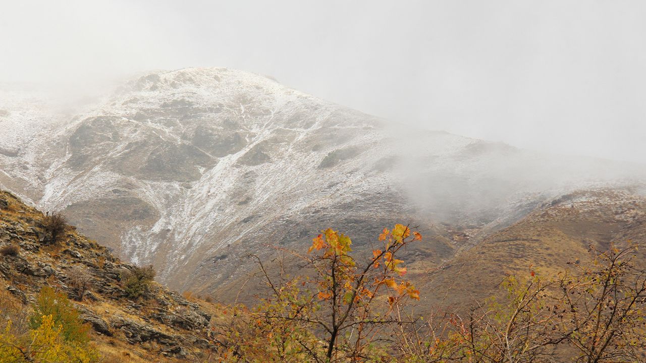 Kar yağışıyla birlikte dağ eteklerindeki sonbahar mevsiminin getirdiği sarı otlar ve yapraklar ile zirveye düşen beyaz karın oluşturduğu kontrast, görenlerin gözlerini kamaştırdı.