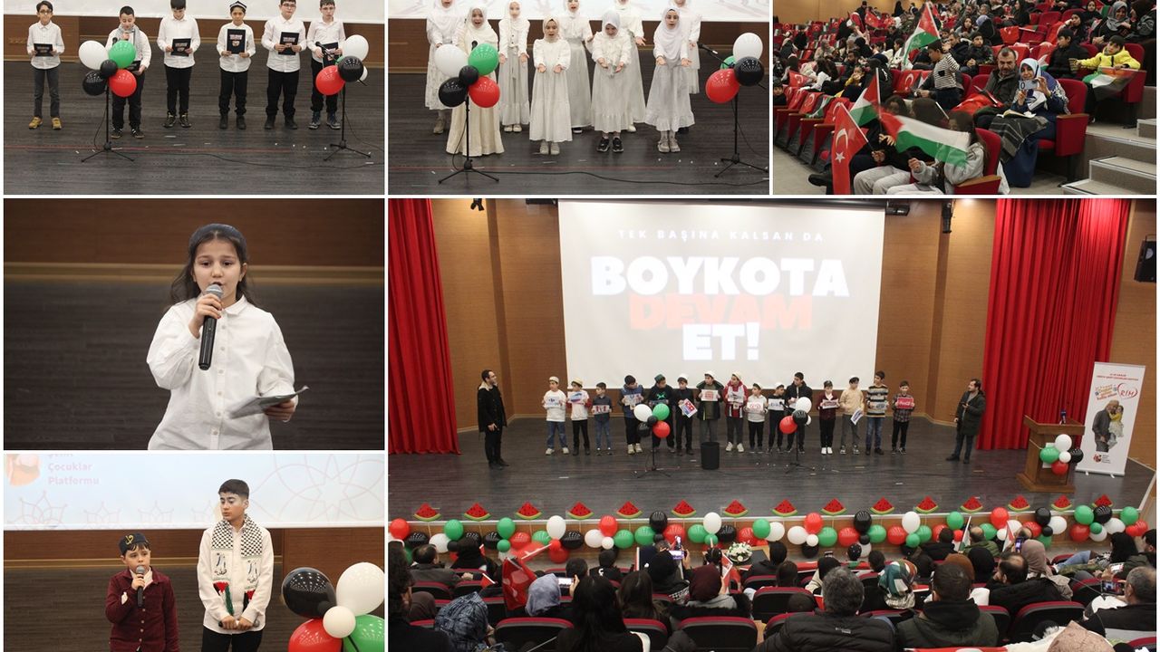 Hafız Taha Serttaş'ın Kur'an-ı Kerim tilaveti ile başlayan program, çocukların seslendirdiği ezgi ve Gazze'de şehit olan 20 binden fazla çocuğu temsilen birkaç şehidin isminin okunarak yoklama alınmasıyla ve çocukların okuduğu şiirlerle devam etti.