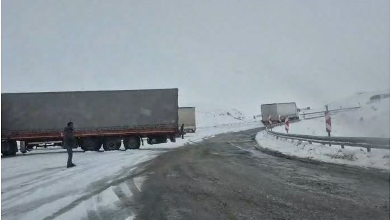 Sabahın erken saatlerinde Erzurum-Çat kara yolunun yüksek kesimlerinde etkili olan kar yağışı ve fırtına nedeniyle yüzlerce tır yollarda mahsur kalırken, yer yer trafik akışı zorlukla ilerliyor. (İLKHA)