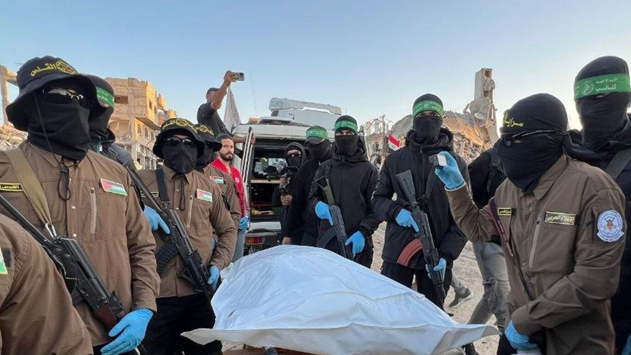 HAMAS'ın askeri kanadı Kassam Tugayları, Gazze Şeridi'nde bir siyonist esirinin cenazesini teslim etti.