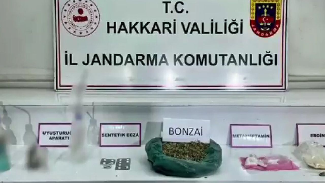 Hakkari Valiliği tarafından yapılan açıklamaya göre, İl Jandarma Komutanlığı Narkotik Şube Müdürlüğü ekiplerince yürütülen çalışmalar kapsamında Yüksekova ilçesine bağlı Dize Mahallesi’nde A.Ö. isimli şahsa ait ikamette arama yapıldı. Aramada 300 gram sentetik kannabionit (bonzai), 130 gram eroin, 30 gram metamfetamin, 12 adet Suboxone ve 4 kullanma aparatı ele geçirildi.