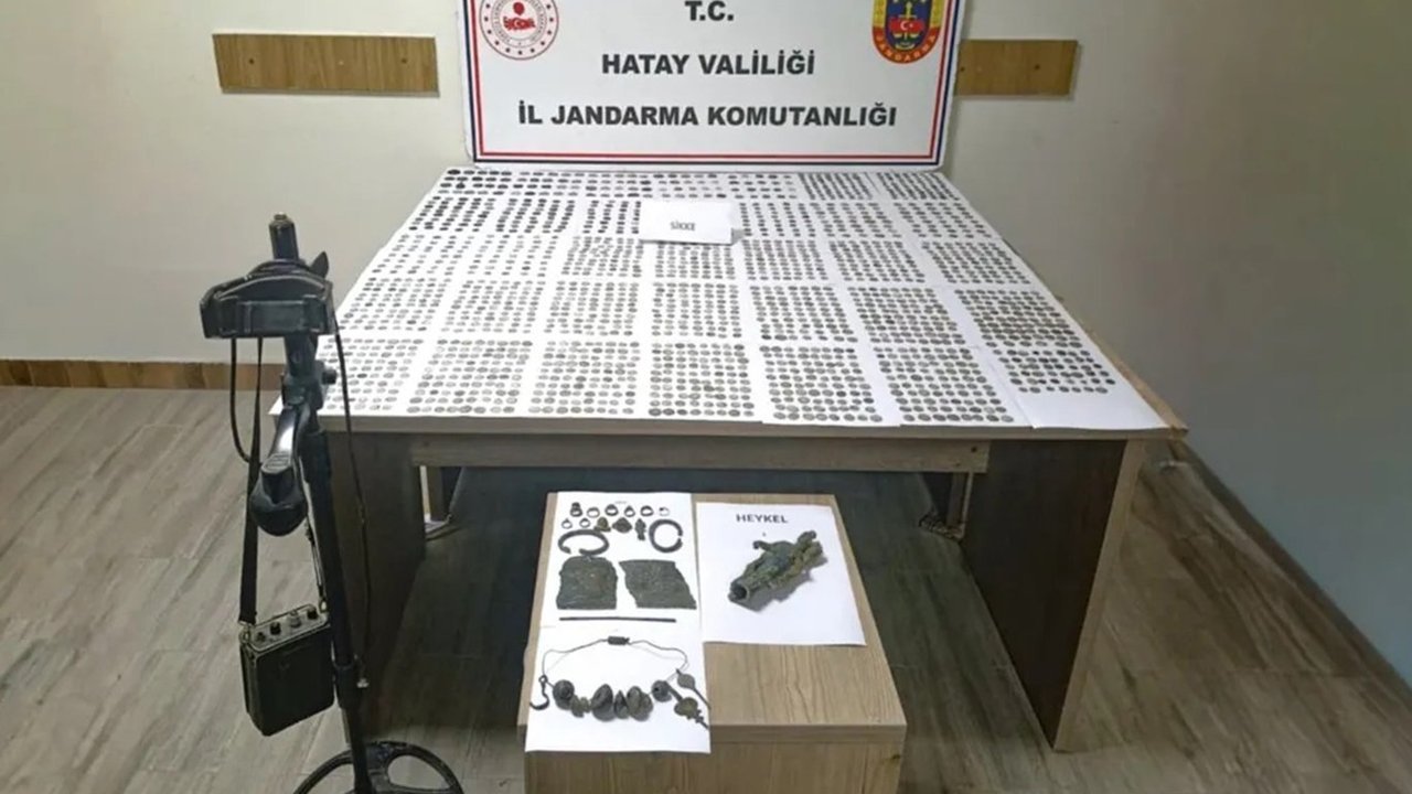 İkamette yapılan aramada tarihi eser niteliği taşıdığı değerlendirilen 1988 sikke, 17 obje ve Roma Dönemi'ne ait olduğu düşünülen heykel ile dedektör ele geçirildi.