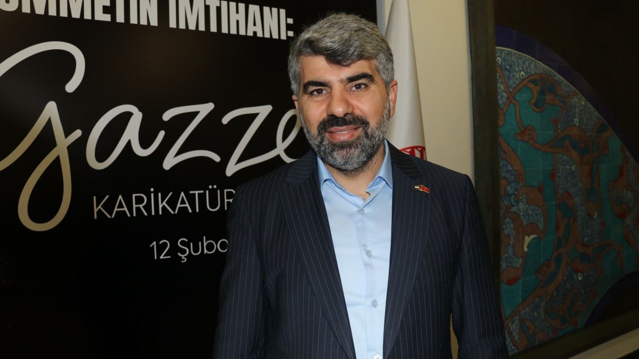 Sergide yer alan ve bir bebeğin elindeki boş biberonla annesinden süt istemesini resmeden karikatürün 'sözü bitirdiğini' belirten Dinç, Gazze’de yaşananların yalnızca ümmetin değil, tüm insanlığın onur sınavı olduğunu ifade etti.
