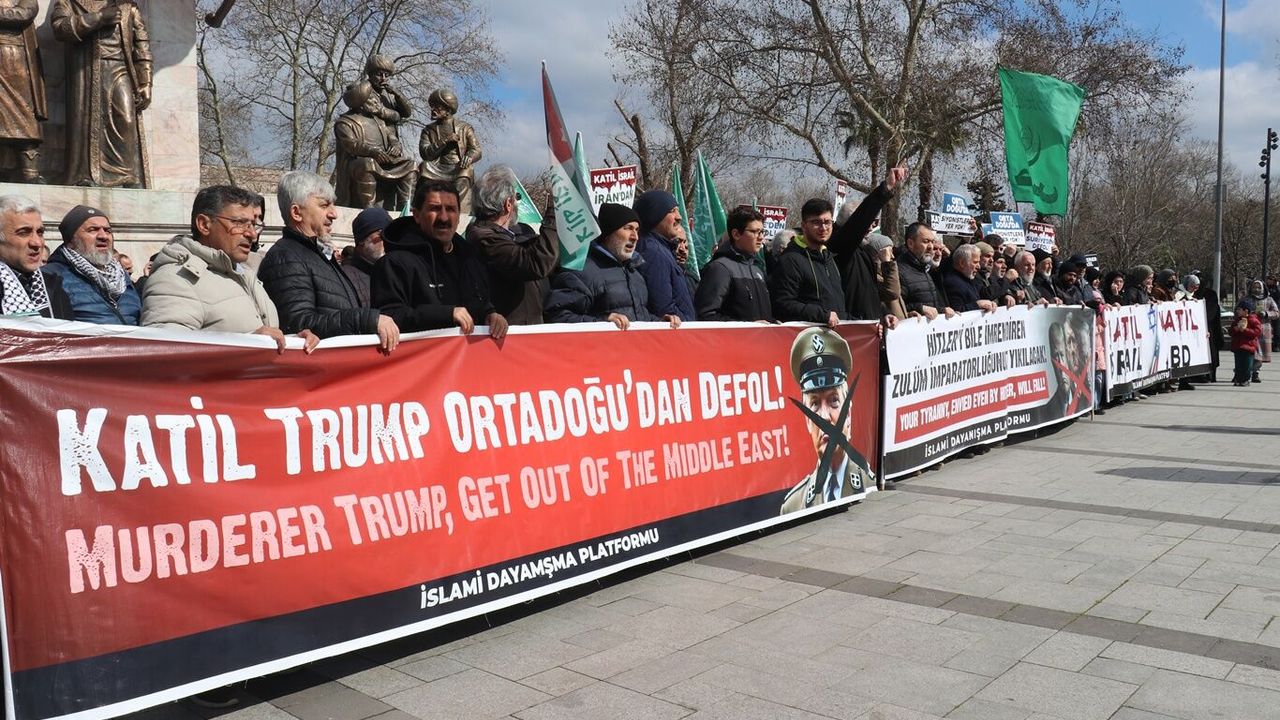Fatih Saraçhane Parkı'nda bir araya gelen yüzlerce kişi, "Katil Trump Ortadoğu'dan Defol", "Katil İsrail, Katil ABD" yazılı pankartlar tutarak, işgal rejimi ve Amerika aleyhine sık sık "Zalimler İçin Yaşasın Cehennem", "Katil İsrail, Katil ABD" gibi sloganlar attı.