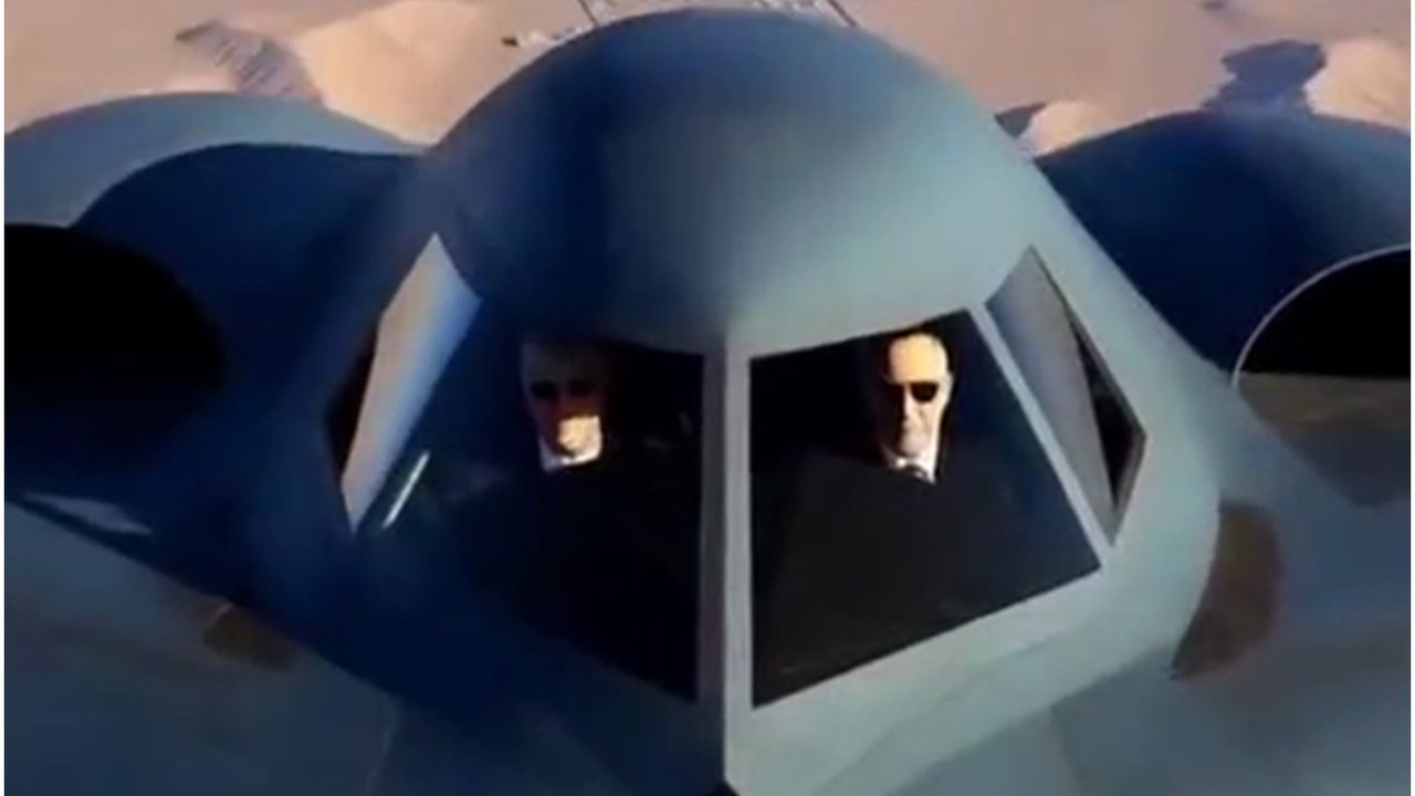 İşgalci Netanyahu’nun resmi ofis hesaplarından yayımlanan görüntüde, Netanyahu ile ABD Başkanı Trump’ın İran üzerinde bir B-2 bombardıman uçağıyla uçtuğu görülüyor. (İLKHA)