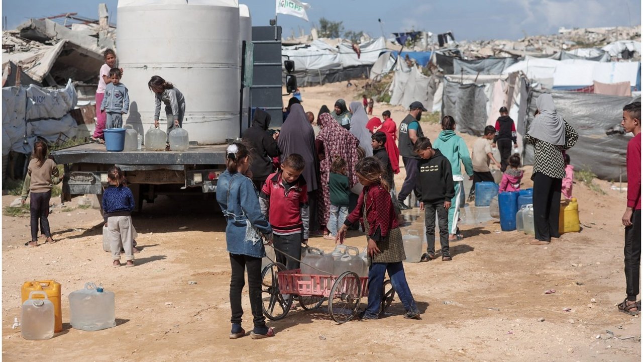 Gazze kent merkezindeki yerinden edilmiş kişilerin barınma merkezlerinde her gün onlarca Filistinli su tankerlerinin önünde sıraya giriyor. Küçük bidonları doldurmaya çalışan insanlar, bunları çadırlarına taşımak için gün içinde defalarca tekrarlanan zorlu bir süreçten geçerek asgari ihtiyaçlarını karşılamaya çalışıyor.