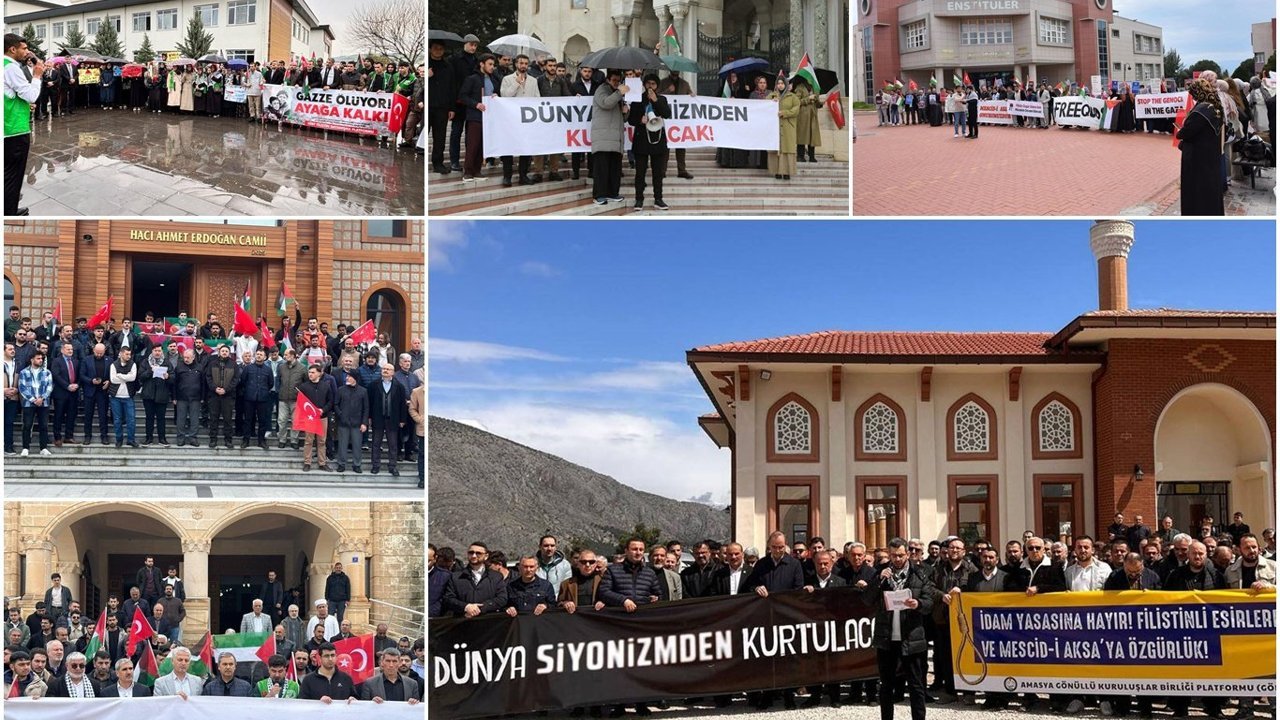 'Dünya Siyonizm'den Kurtulacak' başlığıyla gerçekleştirilen basın açıklamalarında; Mescid-i Aksa'nın 40 gün boyunca ibadete kapatıldığı hatırlatılarak, işgal rejiminin saldırılarının tüm bölgeyi bir ateş çemberine sürüklediği ifade edildi.