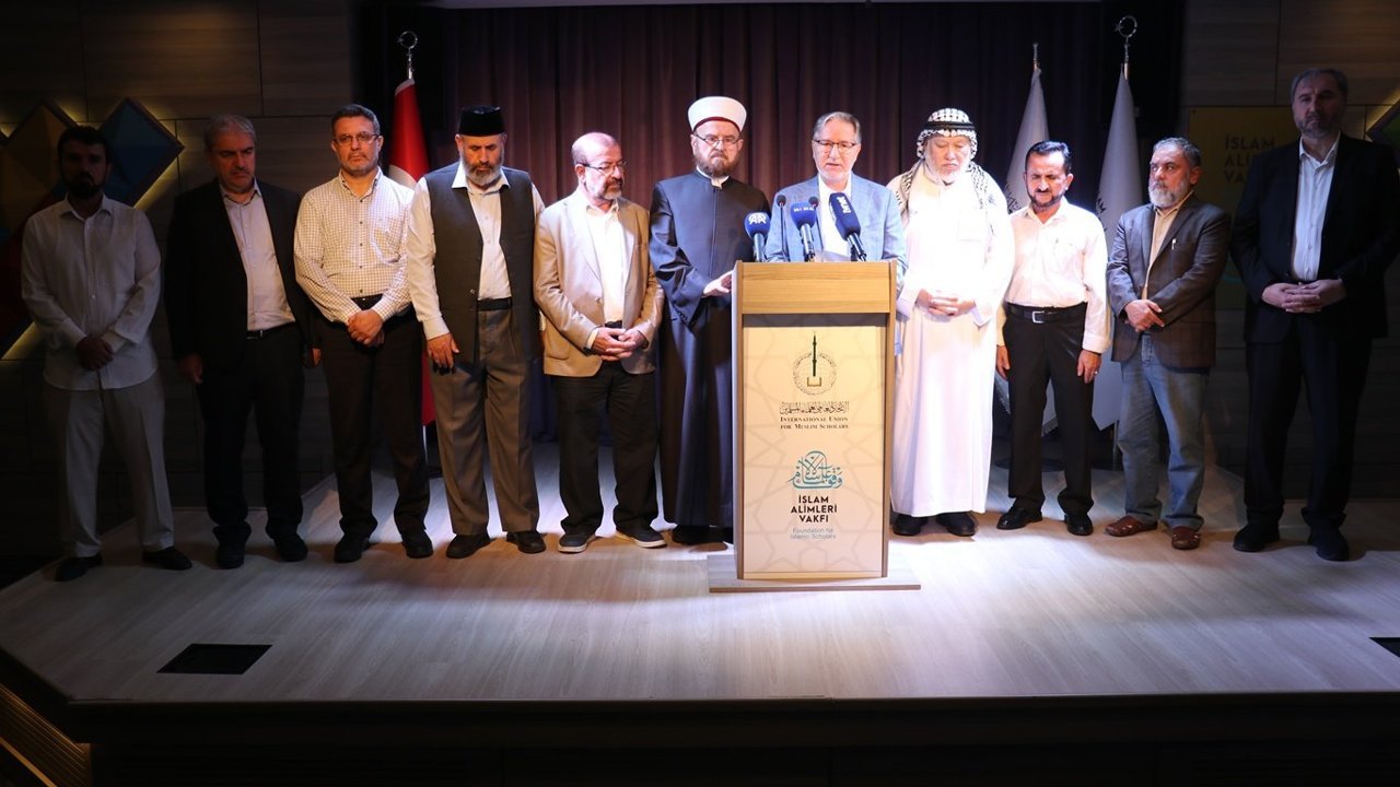 Gerçekleştirilen basın bildirisinin Arapça metnini, Dünya Âlimler Birliği Başkanı Prof. Dr. Ali Muhyiddin el-Karadaği, Türkçe metnini ise Prof. Dr. Mustafa Karataş okudu.