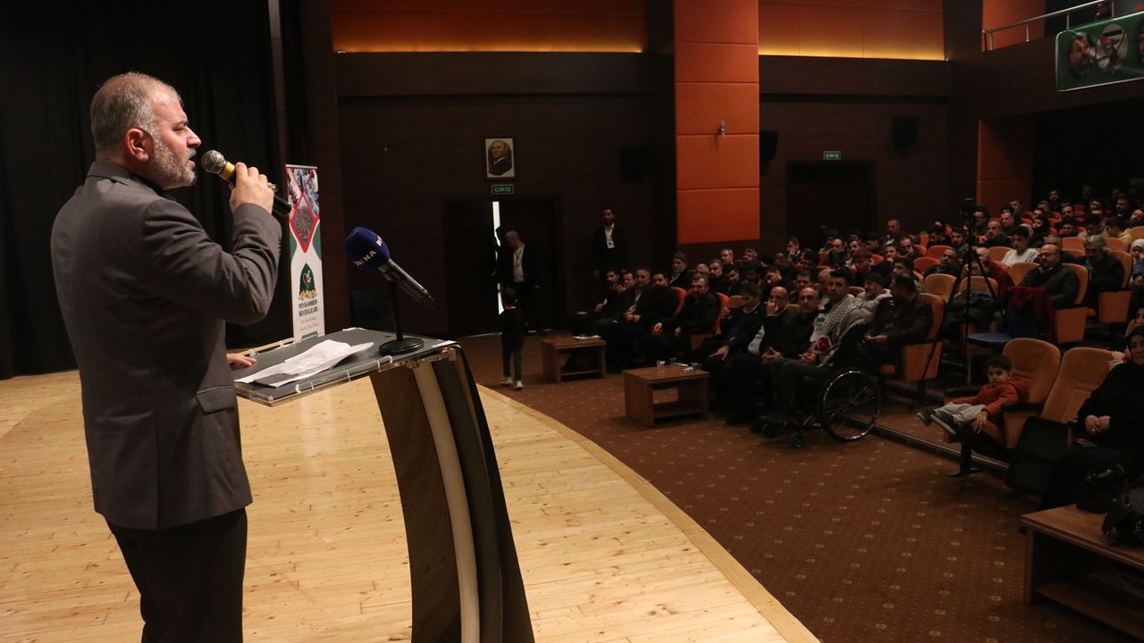 Özlem ajans sanatçılarının ezgileri ve sinevizyon gösterimi ile devam eden programda konuşan İlahiyatçı Mehmet Ali Ortaç, "Şehadet biz Müslümanlara aitken maalesef beşeri ideolojilerin sahipleri, Müslüman gençleri kandırmak için İslami bir terim olan şehid ve şehadet terimini utanmadan kullanmaktadırlar. Şehit ve şehadet, bize zaferler kazandıran değerlerdir. Bunu düşmanlarımız özellikle Aksa Tufanı'nda görüp anladılar. Geçenlerde terörist israilin bir temsilcisinin, 'Bizim ne yapıp edip Müslümanların Allah yolunda kurban olma duygusunu onlardan gidermemiz gerekir. Yoksa onlarla baş edemeyiz' diyordu. Çünkü Gazze'de Rablerinden şehadet dileyen bir avuç müminin bileğini 2 yıl boyunca bükemediler, Allah'ın izniyle bükemeyecekler." dedi.