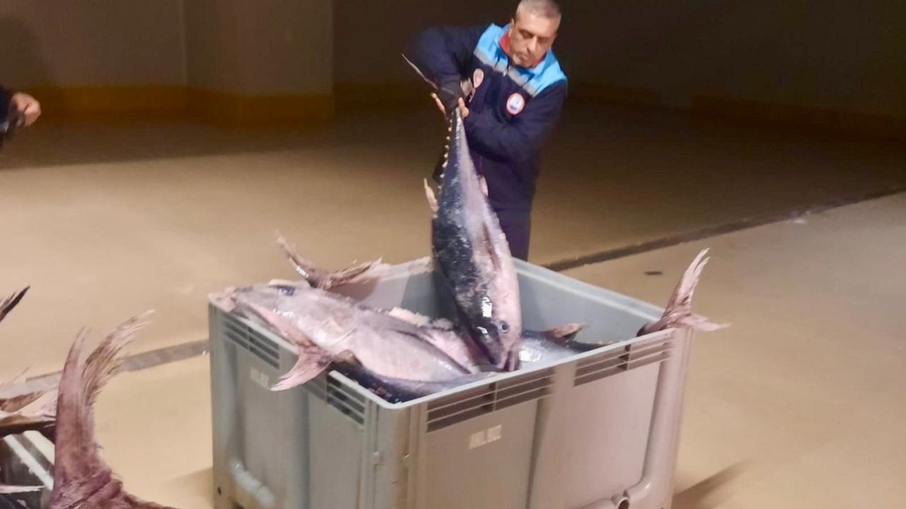 Denetimlerde, yasa dışı avlandığı tespit edilen 19 adet, toplam 570 kilogram mavi yüzgeçli orkinosa mülkiyeti kamuya geçirilmek üzere el konuldu.