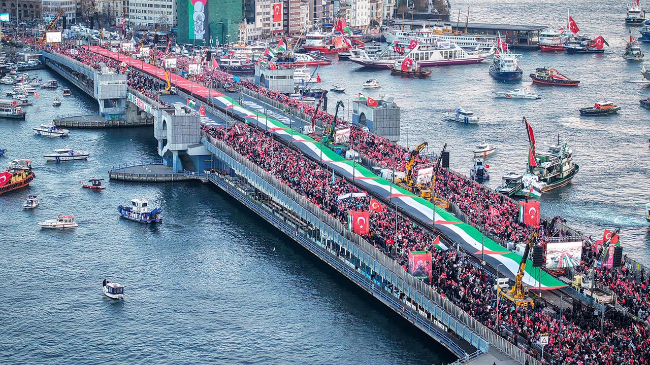 İstanbul, yeni yılın ilk gününde Filistin için tarihe geçen bir kitlesel duruşa sahne oldu. Türkiye Gençlik Vakfı (TÜGVA) öncülüğünde, 400'ü aşkın sivil toplum kuruluşunun katılımıyla düzenlenen "Sinmiyoruz, susmuyoruz, Filistin'i unutmuyoruz" yürüyüşü, sabah namazının ardından başladı ve Galata Köprüsü'nde yapılan programla tamamlandı.