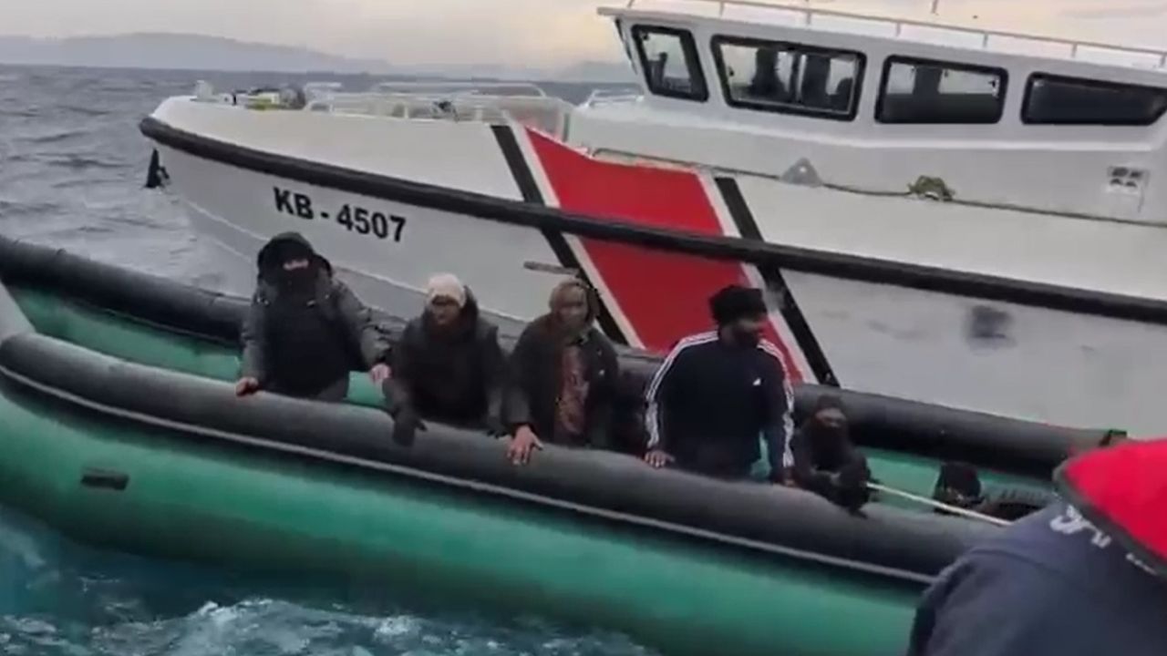 Karaburun ilçesi açıklarında, lastik bot içerisinde bir grup düzensiz göçmen bulunduğu bilgisinin alınması üzerine görevlendirilen Sahil Güvenlik Botları (TCSG-4, KB-4507) tarafından hareketli lastik bot durduruldu.