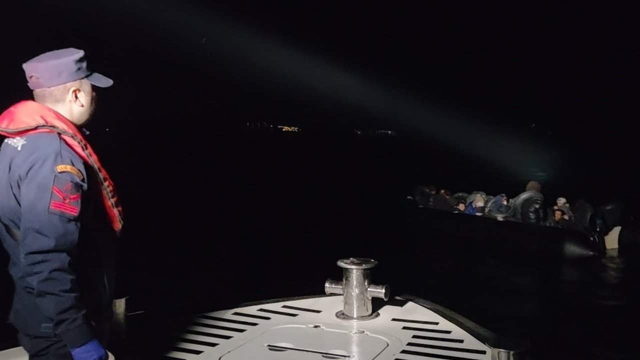 Seferihisar ilçesinde görevli Sahil Güvenlik Mobil Kıyı Gözetleme Aracı tarafından lastik bot içerisinde bir grup düzensiz göçmen bulunduğunun tespit edilmesi üzerine bölgeye ekipler sevk edildi.