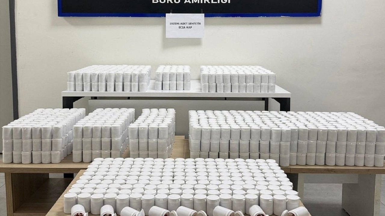 Adreste yapılan aramalarda 102 bin 596 uyuşturucu hap, paketlemede kullanılan bin 973 kutu ve ruhsatsız bir pompalı tüfek bulundu.