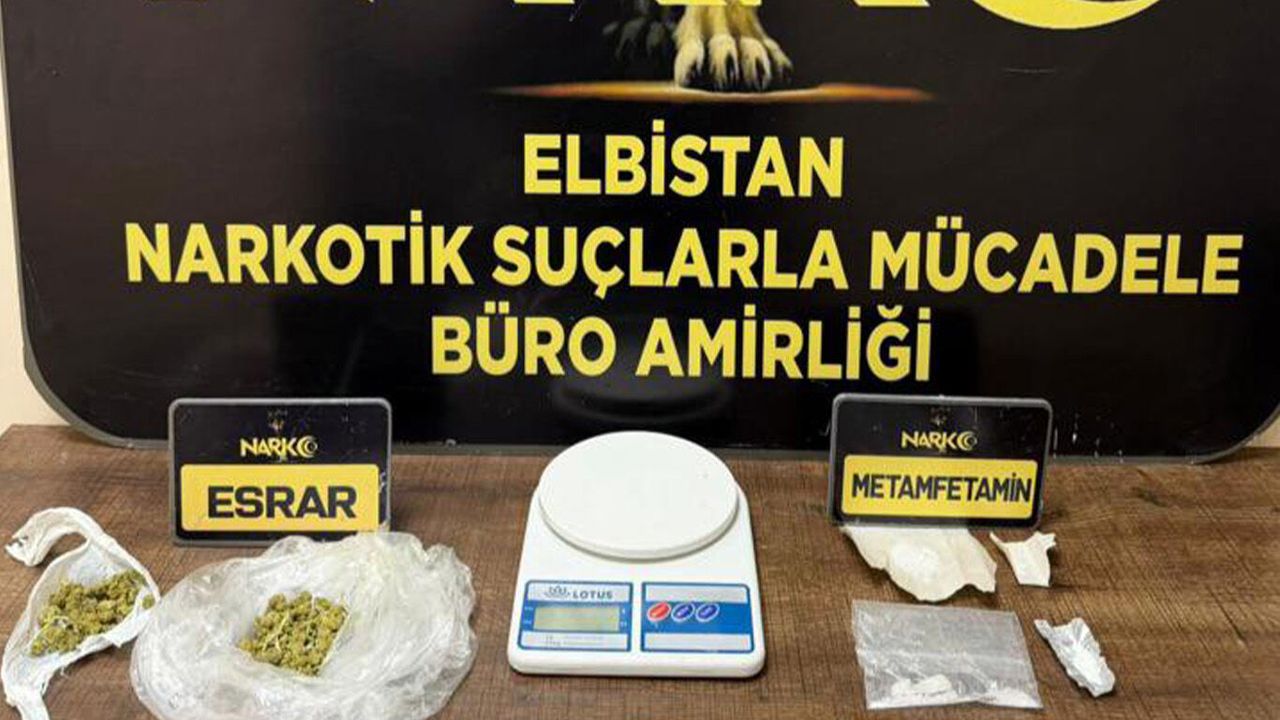 Elbistan Narkotik Suçlarla Mücadele Büro Amirliği ekiplerince 3 Mart tarihinde gerçekleştirilen operasyonda "21,25 gram esrar maddesi, 5,63 gram metamfetamin, bir adet sarılmış esrar ve bir adet hassas terazi" ele geçirildi.