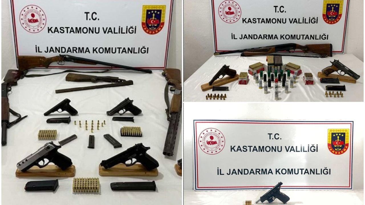 Aramalarda 10 adet ruhsatsız tabanca, 5 adet ruhsatsız av tüfeği, 10 adet tabanca şarjörü, 482 adet tabanca fişeği ile 45 adet av tüfeği fişeği ele geçirildi.
