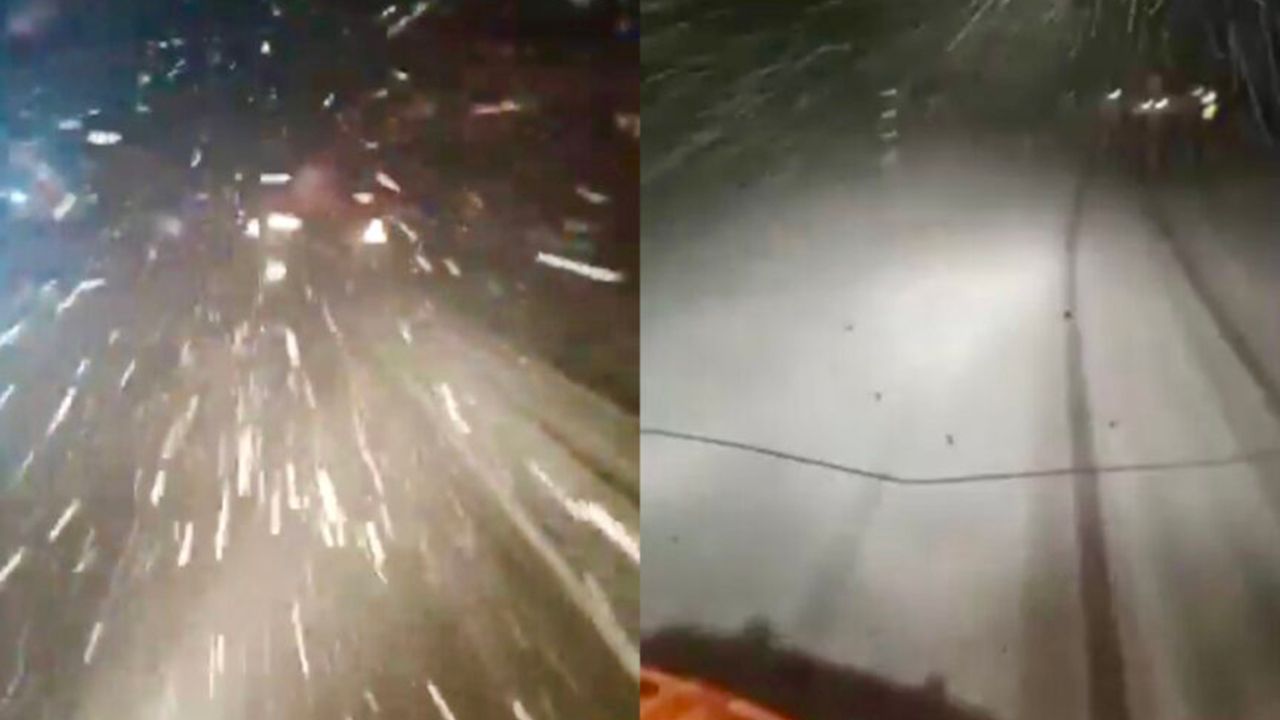 Bölgedeki yağışla birlikte görüş mesafesinin yer yer düştüğü, yolda buzlanma riskinin arttığı bildirildi.