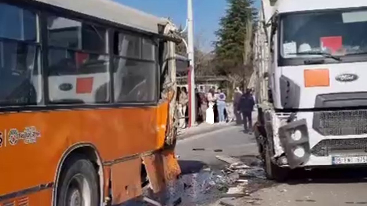 Edinilen bilgilere göre, 06 FNT 975 plakalı hafriyat kamyonu, aynı istikamette seyir halinde olan belediyeye ait körüklü yolcu otobüsüne arkadan çarptı.