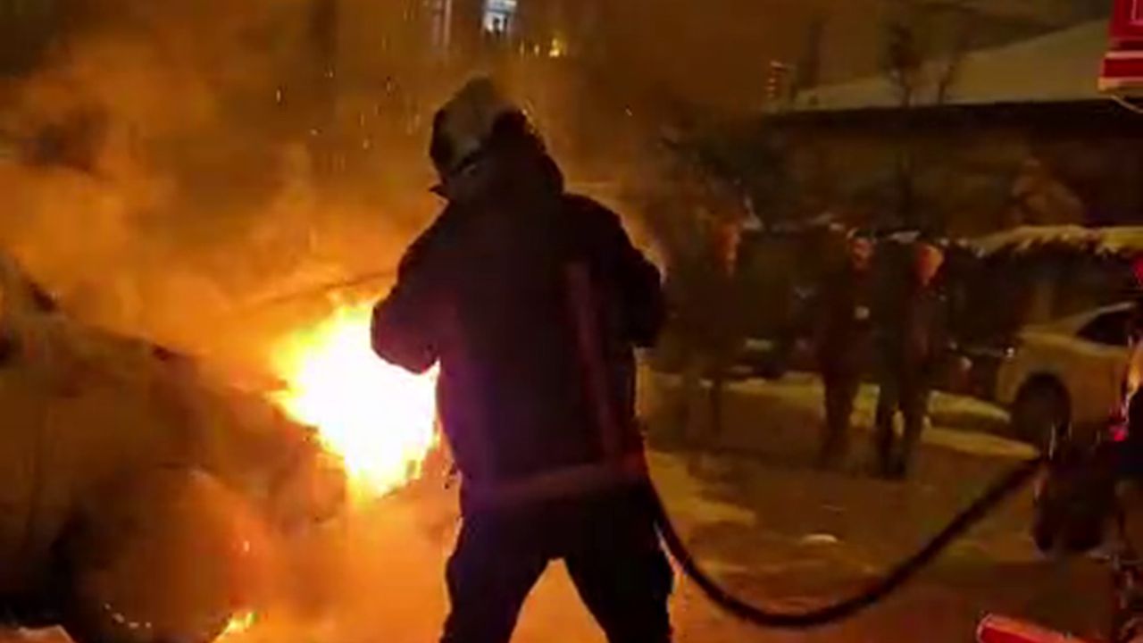 Araç çevresinde bulunan diğer otomobillere alevlerin sıçramaması için araç sahipleri araçlarını, bölgeden uzaklaştırmak için yoğun çaba sarf etti.
