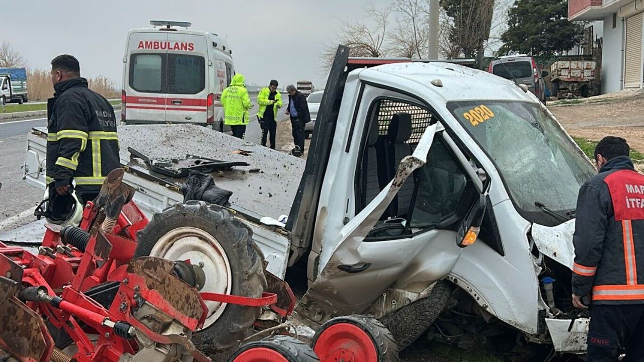 İsmi ve plakaları öğrenilemeyen kamyonet ile traktör çarpıştı. Çarpmanın etkisiyle traktör devrildi.