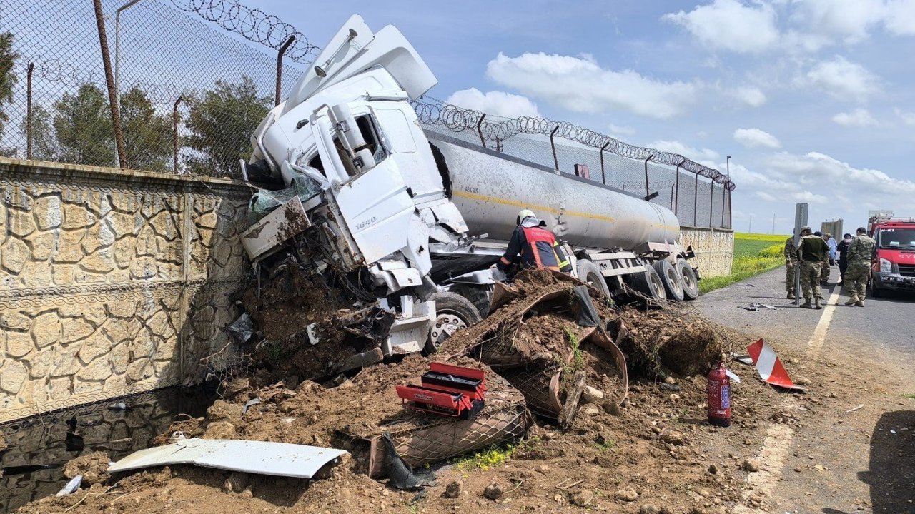 06 ERH 424 plakalı ham petrol yüklü tanker, sürücüsünün direksiyon hakimiyetini kaybetmesiyle yol kenarındaki beton bariyerlere çarptı.