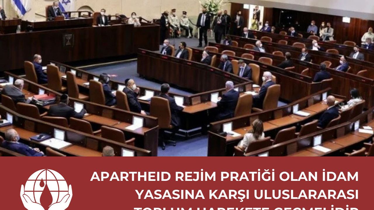 Apartheid rejimin pratiği olan idam yasasına karşı uluslararası toplumun harekete geçmesi gerektiği vurgulanan açıklamada, " İsrail parlamentosu Knesset, sadece Filistinli esirlere uygulanacak idam cezası yasa tasarısını oy çokluğuyla kabul etmiştir. Böyle bir yasa bir apartheid rejim pratiği olup evrensel hukuk ilkelerinin, insan hakları müktesebatının ve uluslararası insancıl hukukun açık ihlalidir." denildi.