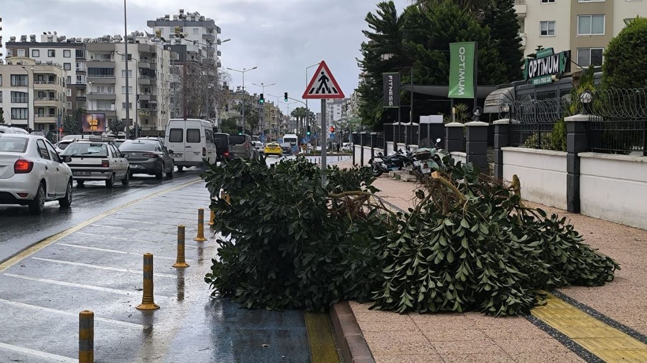 Kentte sabah saatlerinden itibaren etkili olan fırtına, hayatı olumsuz etkiledi. Kuvvetli rüzgar nedeniyle bazı ağaçlar devrilirken, iş yerlerine ait tabelalar yerinden koparak yollara savruldu.