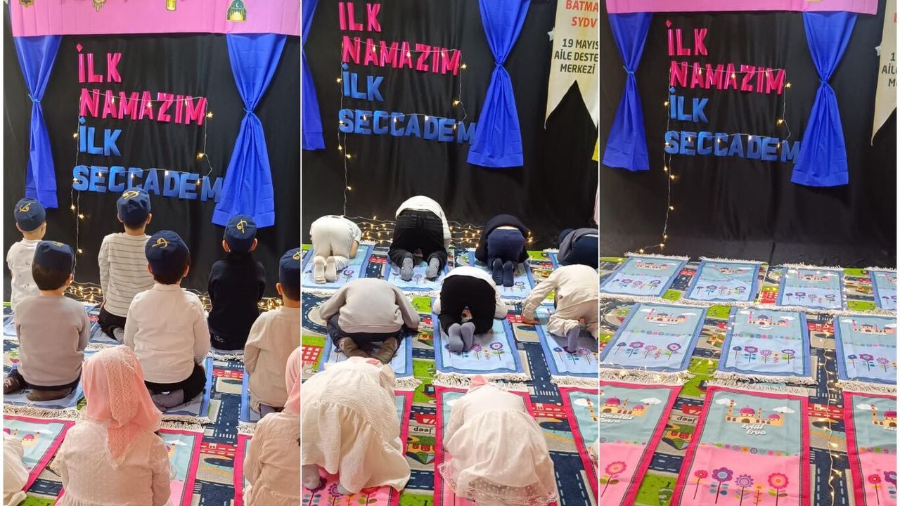 Batman Valiliği Sosyal Yardımlaşma ve Dayanışma Vakfı bünyesinde faaliyet gösteren 19 Mayıs Aile Destek Merkezi'nde 4-6 yaş Kur'an'ı Kerim Kursu öğrencilerine yönelik "İlk namazım ilk seccadem" etkinliği düzenlendi.