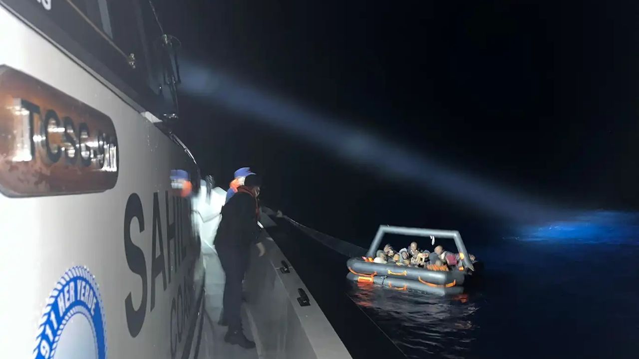Sahil Güvenlik Komutanlığı ekipleri, ilçe açıklarında lastik bot içindeki 5'i çocuk 35 düzensiz göçmen ile göçmen kaçakçısı olduğu belirtilen 1 kişiyi yakaladı.