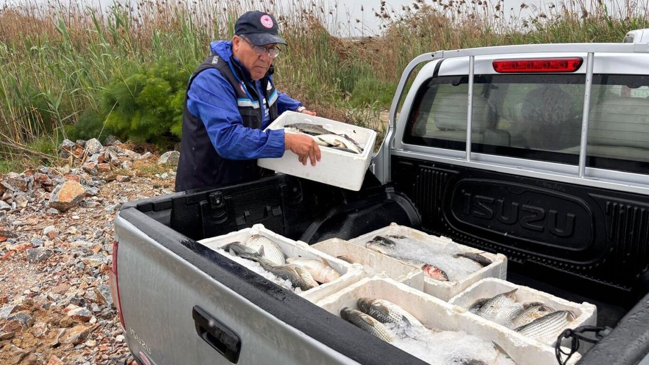 Balıkların mülkiyeti kamuya geçirilirken, olayı gerçekleştiren kişiye 16 bin 106 lira idari para cezası uygulandı. (İLKHA)