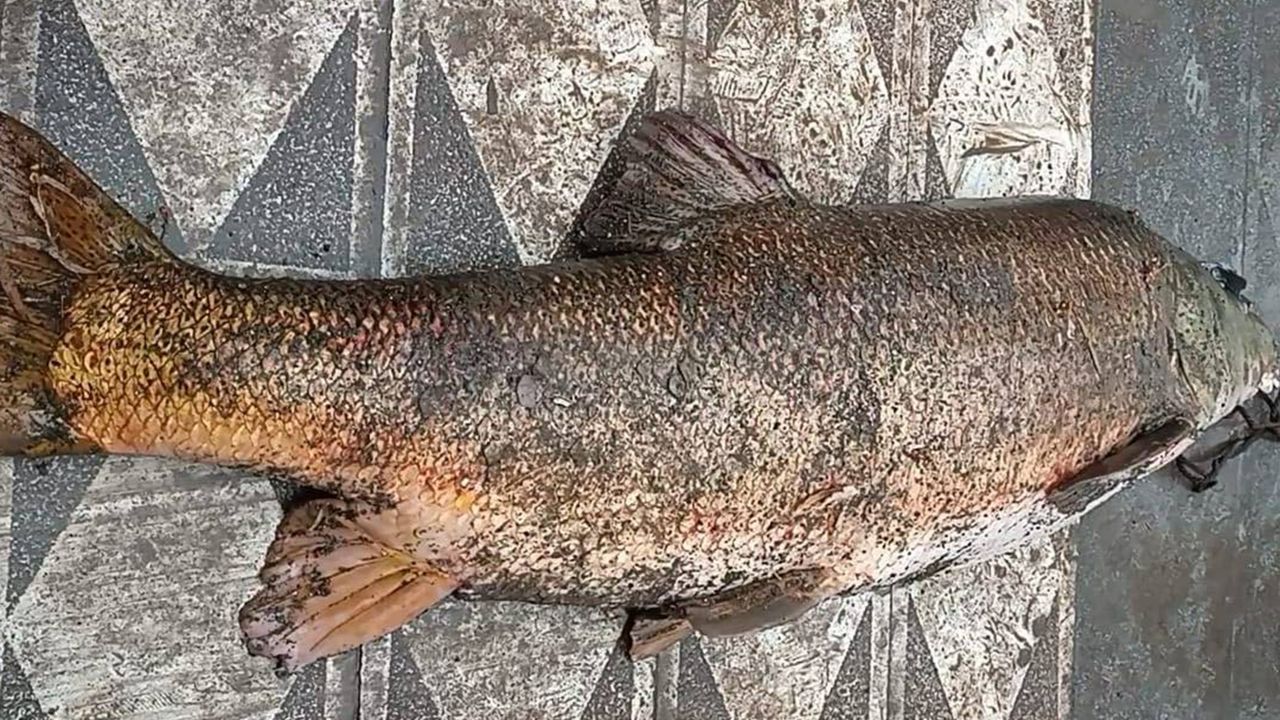 Yaklaşık 60 kilogram ağırlığındaki dev balığı görenler şaşkınlıklarını gizleyemedi. (İLKHA)
