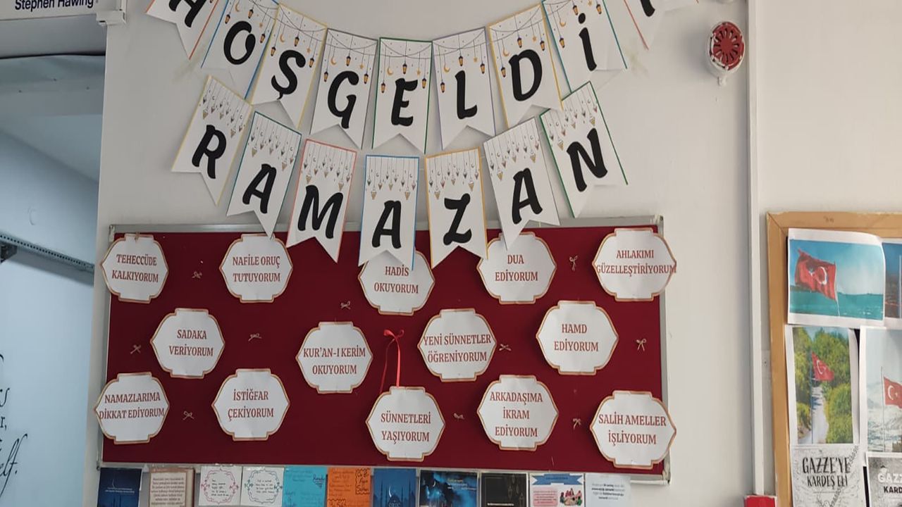 Ramazan ayının manevi atmosferi okullara taşındı. Türkiye genelinde yürütülen çalışmalar doğrultusunda sınıflar ve okul panoları Ramazan temasıyla süslenirken, öğrenciler öğretmenleri rehberliğinde ayın ruhunu yansıtan etkinliklere katılıyor.